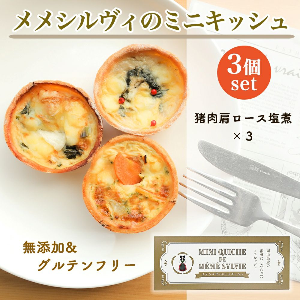 他の画像を見る 【プレヴナン】※冷凍 米粉のミニキッシュ 3個入り 【猪肉カタロース塩煮×3】 メメシルヴィのミニキッシュ 岡山県産 販売価格 ¥ 2,160 税込 カートに入れる お気に入りに登録する