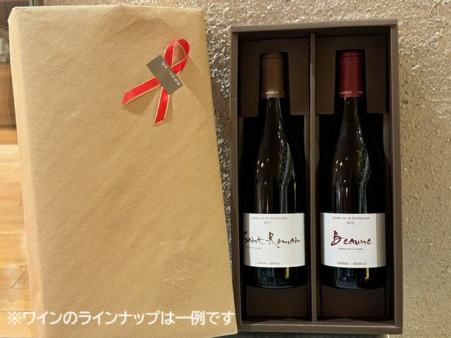 ギフト箱に入った白・赤ワインの2本セットです。 リボン対応・熨斗紙対応させていただきますので、ご要望をお聞かせください。