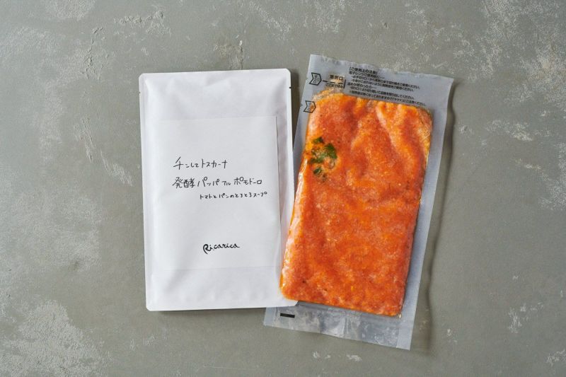 “パッパアルポモドーロ”は、かたくなったパンをトマトソースで柔らかくして食べるトスカーナ地方の伝統的な家庭料理。現地では、食欲がないときや二日酔いのときによく食べられている“トマトのパン粥”のようなもの。そんなパッパアルポモドーロを、よりヘルシーに、お手軽に召し上がっていただきたいとの思いから、リ・カーリカ特製の発酵野菜を使った“発酵パッパアルポモドーロ”が誕生しました。トマトの旨味と発酵野菜の酸味で目覚めるカラダ!冴える脳!しっかりパンが入っているので、これだけでお腹も満たされます。お野菜やお魚、お肉のソースとしても使えます。